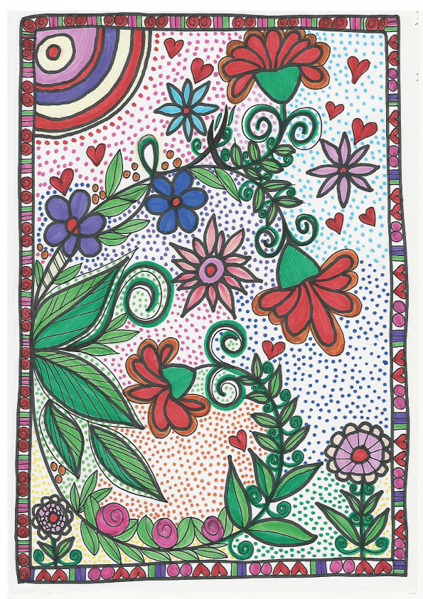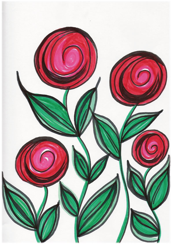 A few years ago, I embarked on a whimiscal art journey – creating very loose shapes, florals and strokes with Sharpie pens, textas and gel pens.