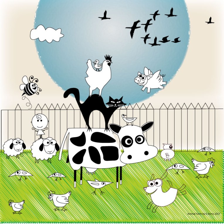 This is a little drawing I did (AI) initially, for a business card. I got a lot carried away and it became an abstracty-type farm scene.